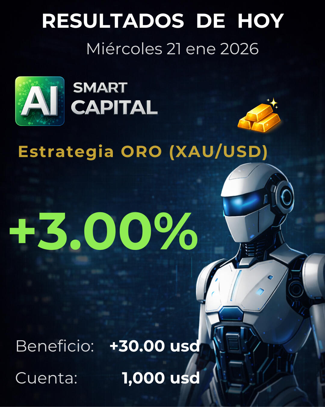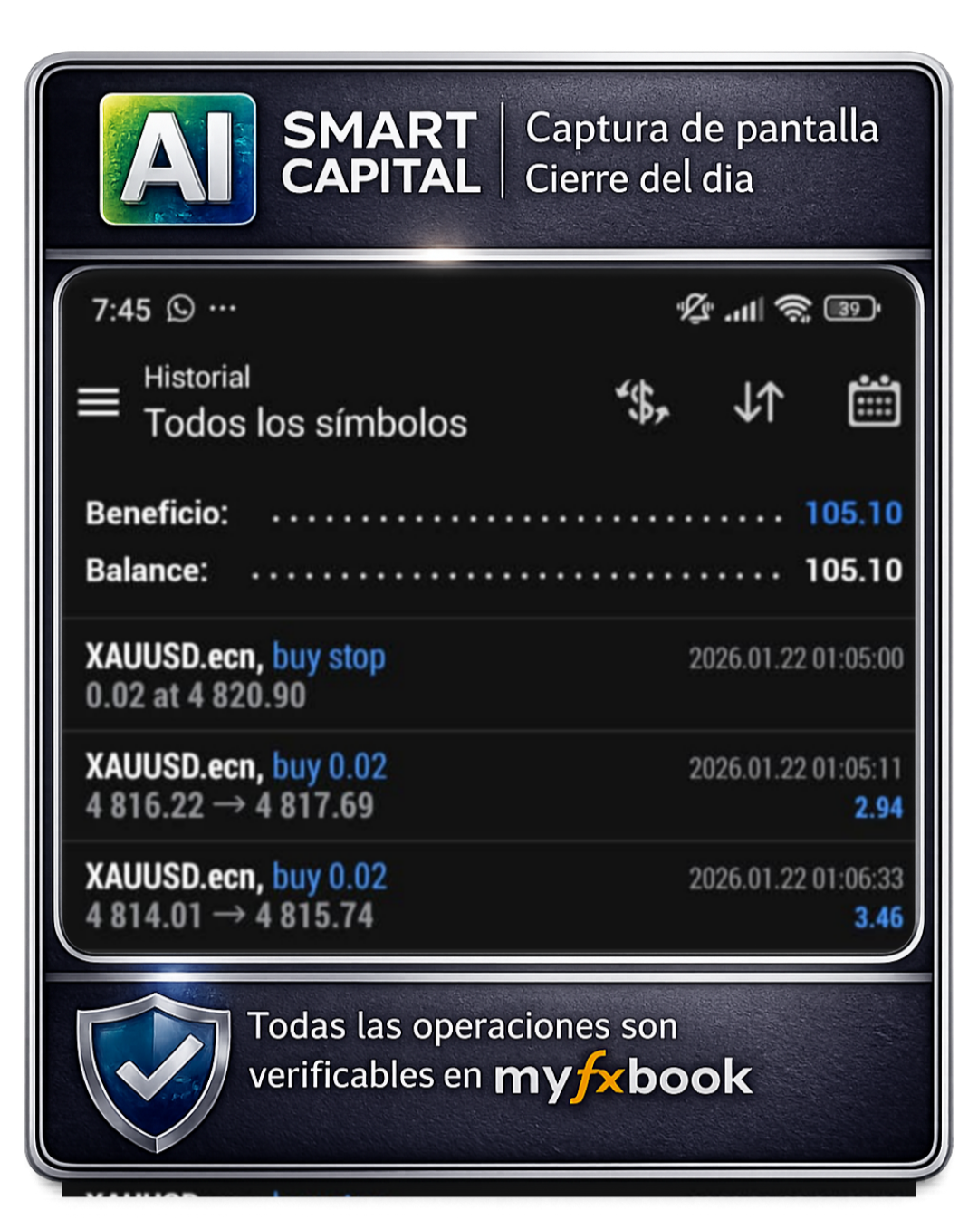 Publicamos diariamente resultados verificables en nuestras redes sociales con capturas de operaciones reales.